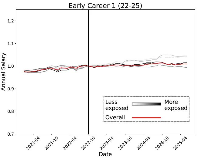 【新智元导读】AI正在无声改变美国就业市场,而最先倒下的,竟是年轻人!斯坦福大学最新研究发现:22—25岁新人,正遭遇前所未有的就业危机:毕业即失业,正在成为现实。AI「精准打击」这届美国人年轻人,年轻人还有出路吗?